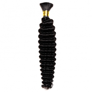 Human Hair Bulk Natural Black For Boho Braids--Deep Wave