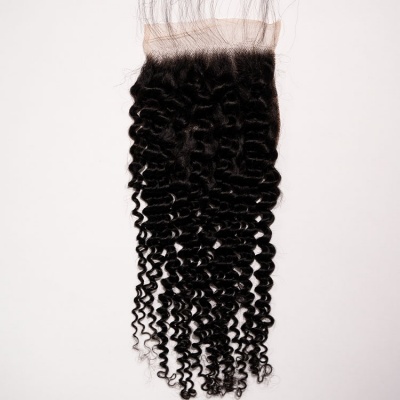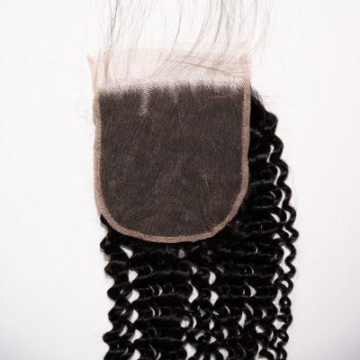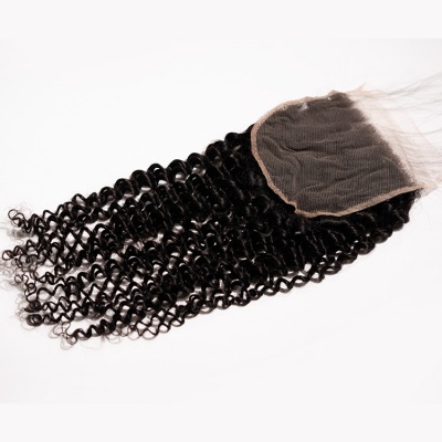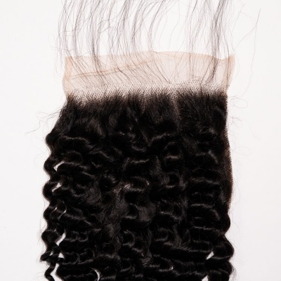 Virgin Indian Hair Individual Closure Natural Black--Deep Wave