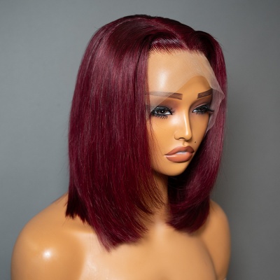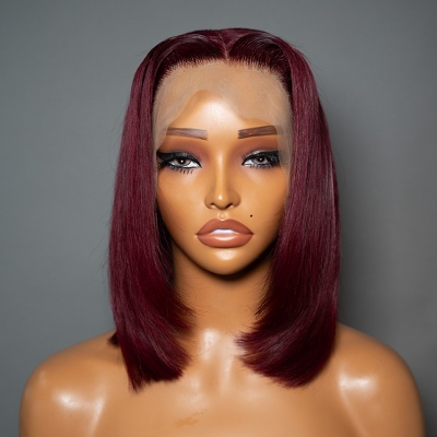 Virgin Indian Hair LY Lace 13*4 BOB Wig 99J#--Straight