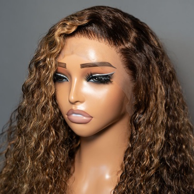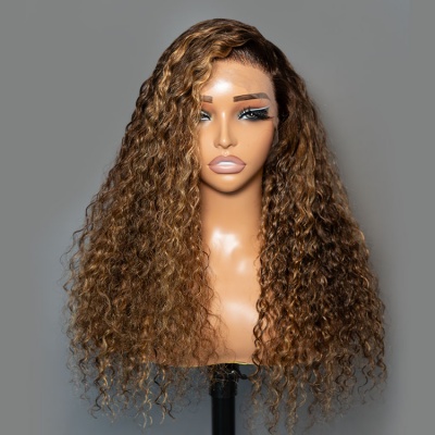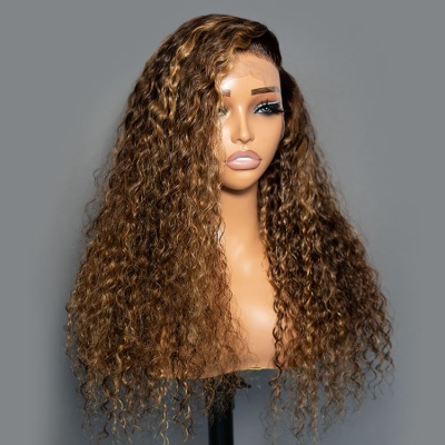 Virgin Indian Hair LY Lace 13*4 Frontal Wig 150%Density P4/27#--Deep Wave
